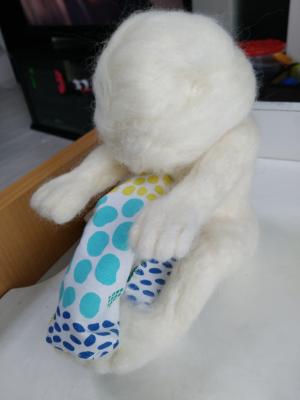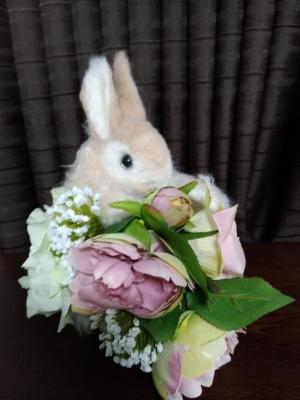 腕につけるぬいぐるみ、抱っこちゃんウサギを作成しました。