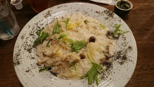 これは私が選んだ茹で鶏ときのこのクリームリゾット+ジェノベーゼソーストッピング(別添え)です。