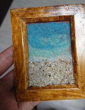 そしてシルエットのラクダを張り付け、額縁をAT粘土+アクリル絵の具で制作したサボテンを貼り付けていきます。