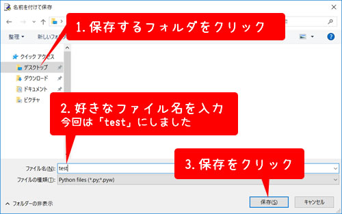 ※IDLEで保存したファイルの拡張子は「.py」です。