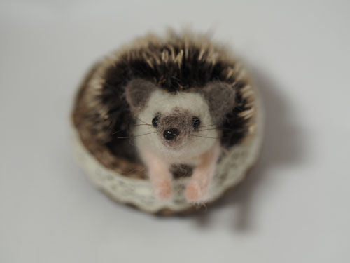 今回販売する予定のハリネズミのぬいぐるみも5cmくらいで鼻の穴の造形も樹脂粘土で作りました。