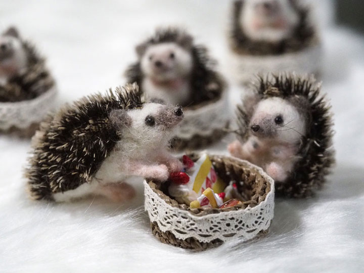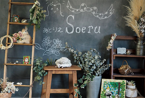 あとは、あとりえSoeruのサイトやロゴに散りばめられているリアルハリネズミの帽子、「のせぐるみ」も展示します。