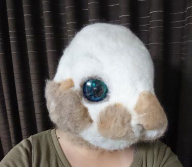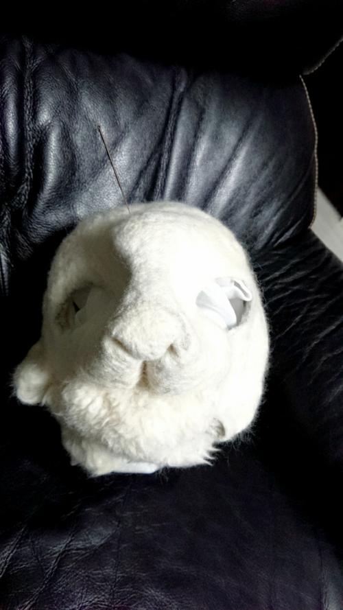 そしてフェルトで頭の形を徐々に作り、まずは白いマスクになりました。