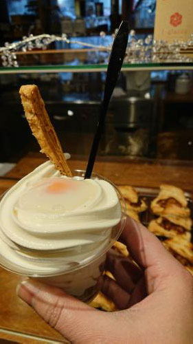 また、アップルパイのお店なのでスティックパイと下に敷いてあるクラッシュパイが香ばしくてこれもまた美味。
