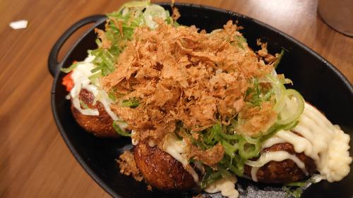 JR琴似駅と地下鉄琴似駅の間の道に香るタコ焼きのにおいに誘われてふらふらと中に入っていきました。 オススメのしょうゆ+油かすのタコ焼き。 カリカリで美味しい! 1位の明太子+チーズ+味噌ソースも頼んでみましたが個人的には油カスのタコ焼きの方が好きでした。